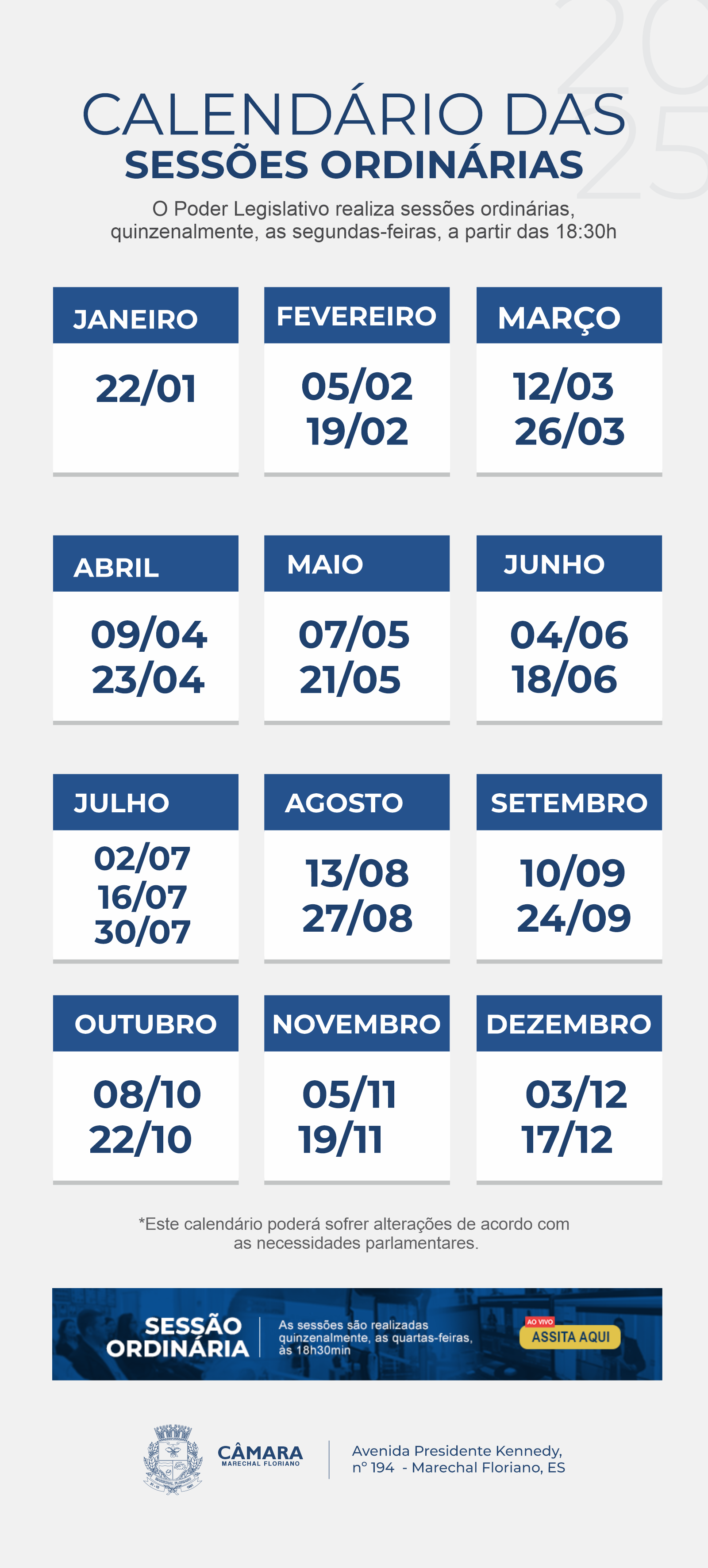 Agenda das Sessões